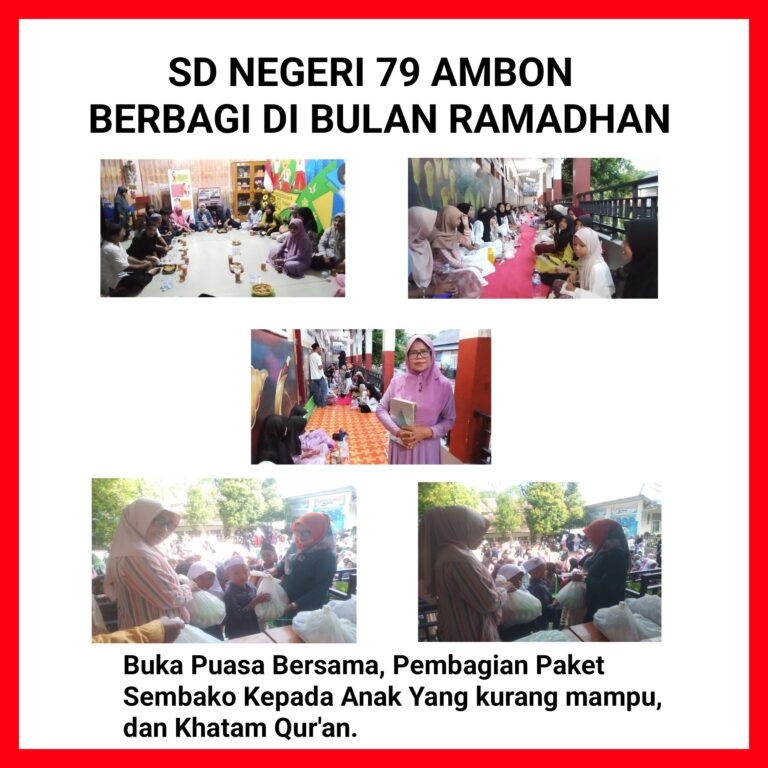 Kamis (20/03/2025) SD Negeri 79 Ambon berbagi di bulan suci ramadhan dengan mengadakan pesantren kilat yang di meriahkan secara islam dengan Khatamal Qur’an, berbagi sembako kepada murid di sekolah yang kurang mampu dan yatim piatu, serta juga berbuka puasa bersama.
