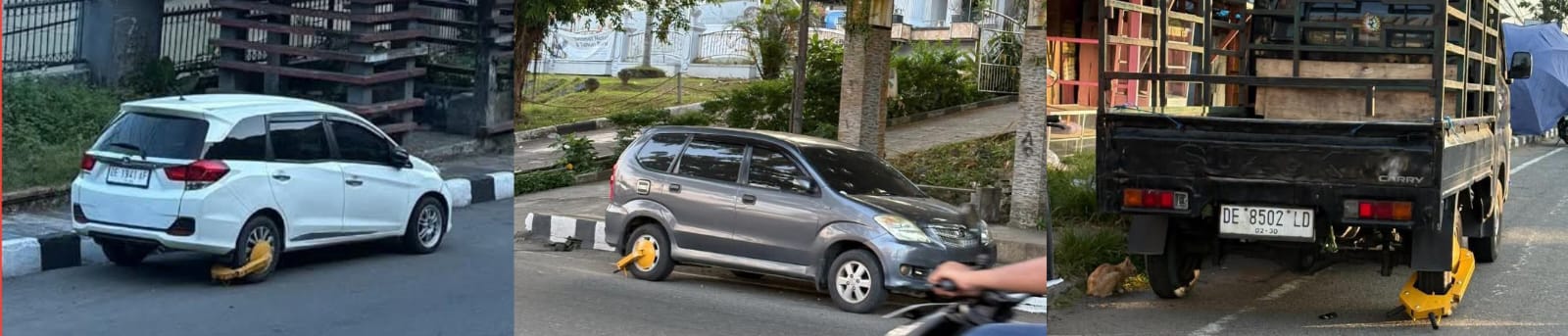Ambon, Pena-Rakyat.com – Sejumlah kendaraan roda empat yang parkir di badan jalan digembok oleh Dinas Perhubungan (Dishub) Kota Ambon.