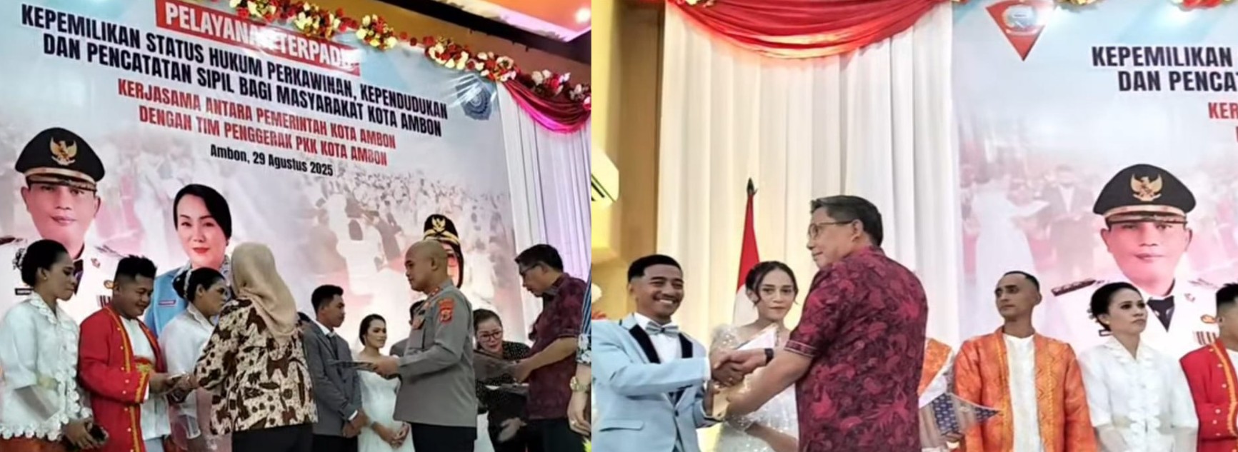 Ambon, Pena-Rakyat.com – Kegiatan pelayanan terpadu, kepemilikan status hukum perkawinan, kepemilikan kependudukan dan pencatatan sipil bagi warga kota Ambon kembali digelar oleh Pemerintah Kota Ambon bekerja sama dengan Kementerian Agama Kota Ambon dan Pengadilan Agama Kelas II Ambon, serta Tim Penggerak PKK Kota Ambon pada hari Jumat (29/08/2025) di Aula Gedung Xaverius Ambon.